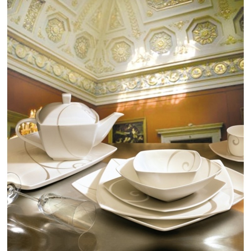 piano cm. 27x27 in bone china bianco con decorazione leggermente arabescata , in chiave moderna ..