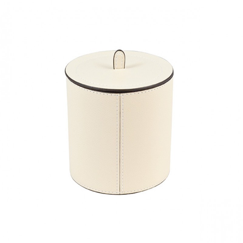Contenitore cilindrico in pelle, h cm 16,5, d. cm 13, con coperchio, oltre 300 varianti cromatiche, eccezionale esecuzione artigianale italiana firmata Giobagnara.