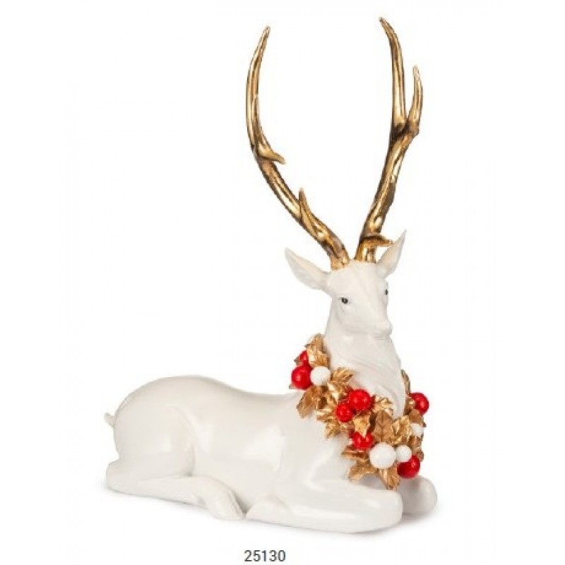 Renna bianca seduta con ghirlanda, dim. cm. 25x34
