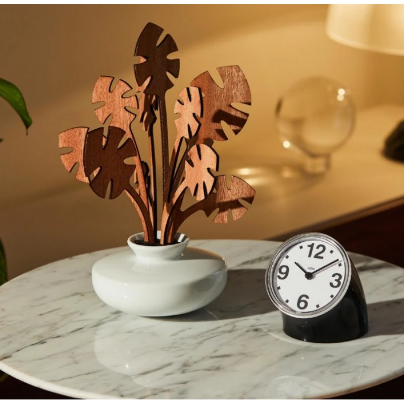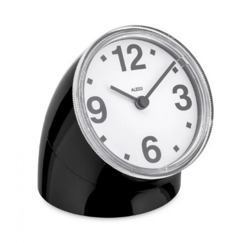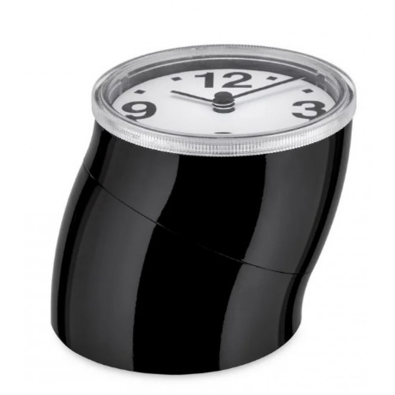 Orologio da tavolo in ABS, nero, design Pio Manzù.