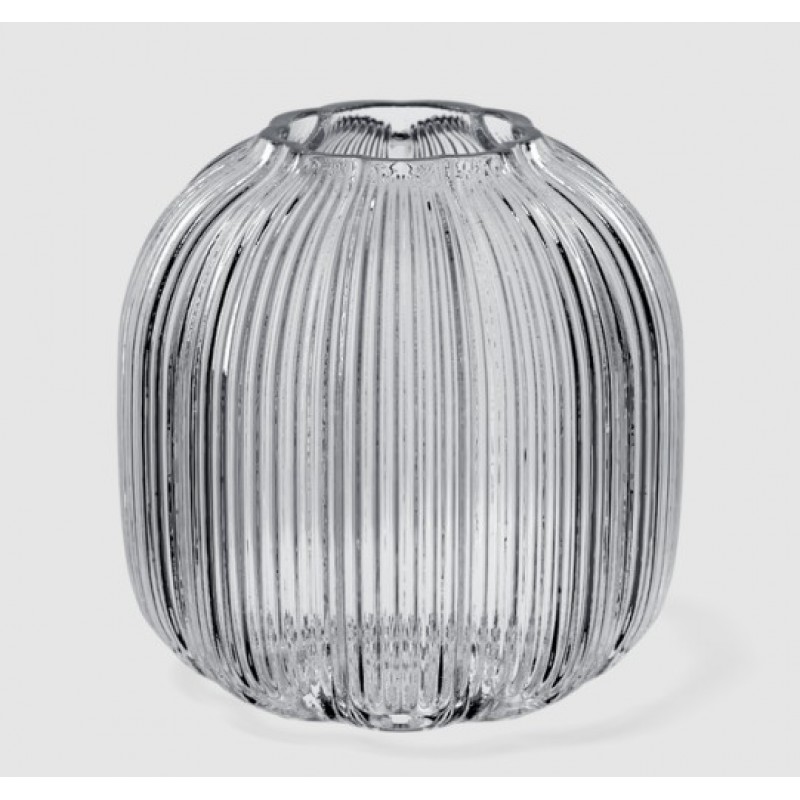 Vaso in vetro trasparente, cm. 11x11 per decorare con eleganza.