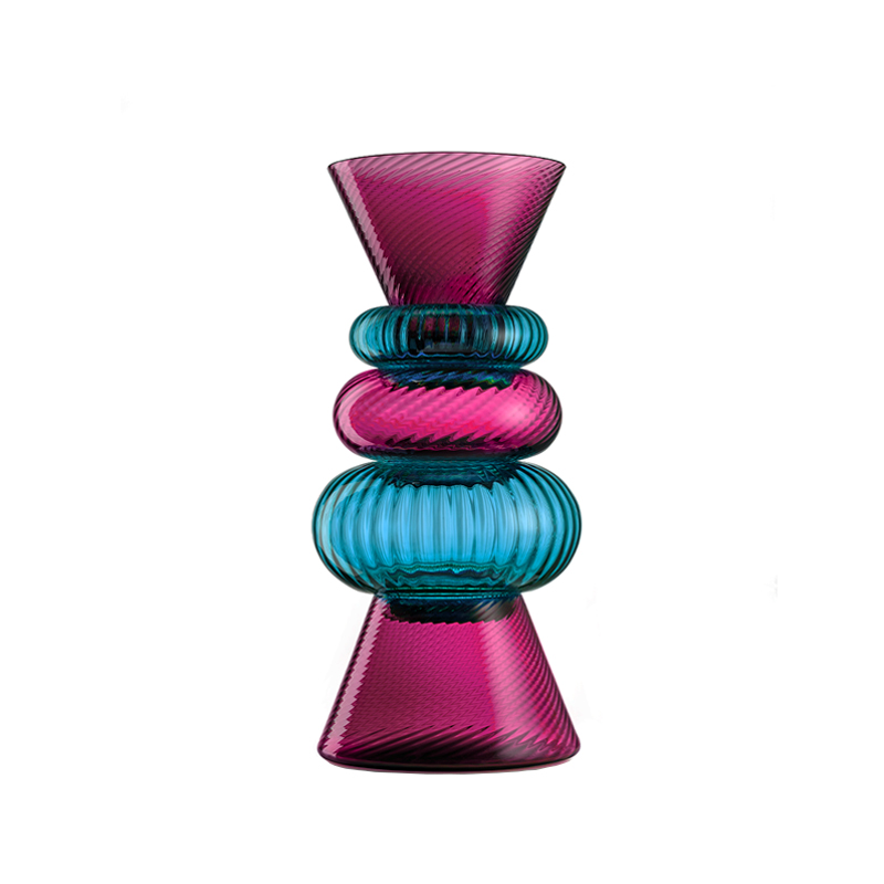 Vaso composto da 5 coppette in vetro di Murano, soffiatura a bocca arrtigianale, h. cm 36 d. cm 16, bicolore, ottima esecuzione artigianale della rinomata azienda italiana NasonMoretti.