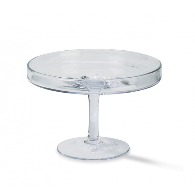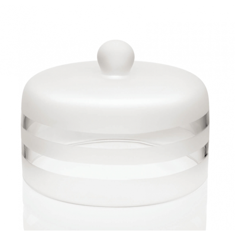 Alzata in vetro soffiato trasparente, h. cm 20, d. cm 28, con campan in vetro satinato, ottima esecuzione artigianle italiana.