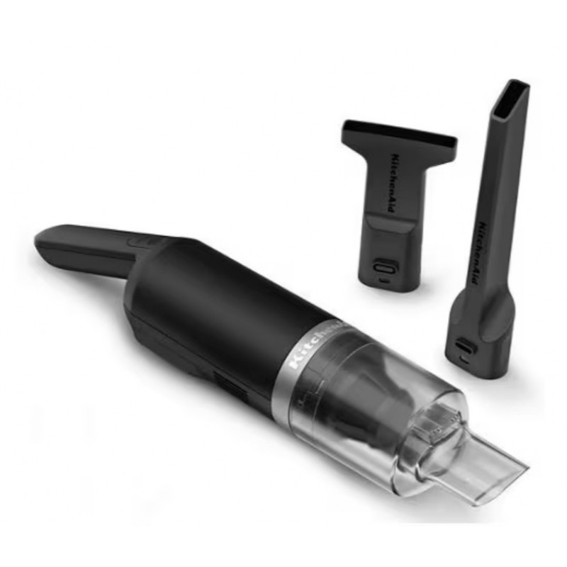 Aspirabriciole senza fili con batteria e 2 accessori in dotazione.