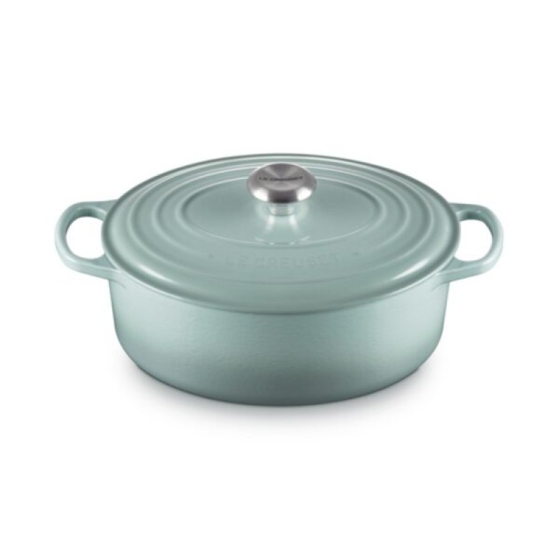 Casseruola ovale con coperchio , diametro cm. 29, h. cm. 17, lt. 4,7., colore in pronta consegna Sea salt.