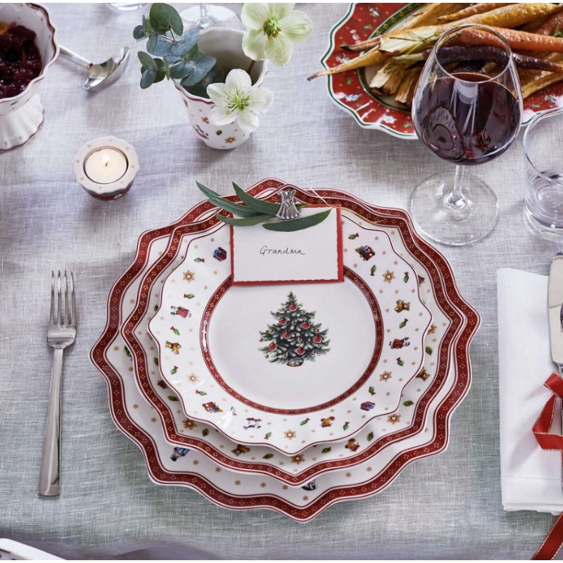 piatto piano cm. 28,4 in porcellana decorato con deliziosi motivi natalizi